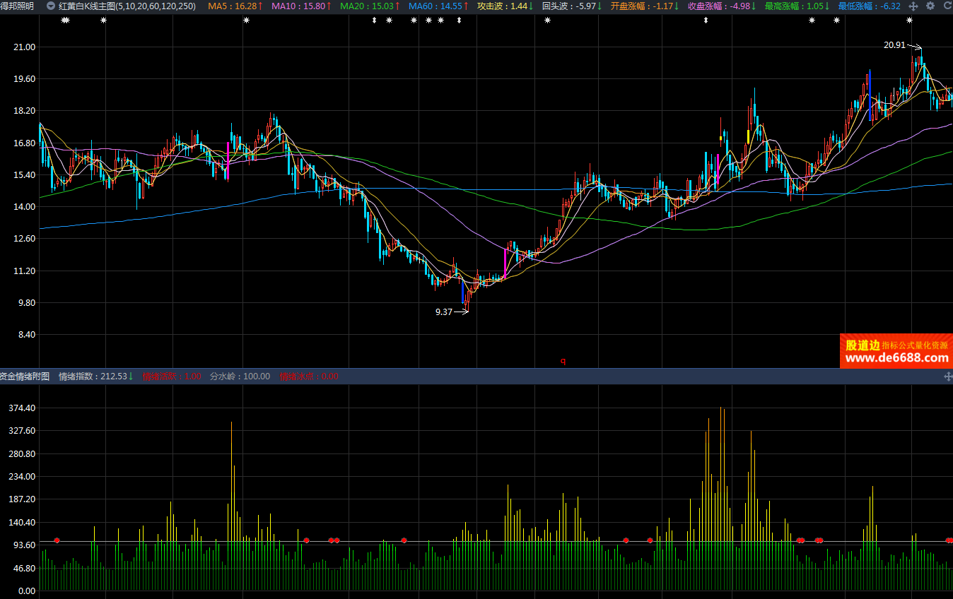股牛牛使用精选公式 红黄白K线主图指标 资金情绪附图公式 情绪冰点 主附图源码