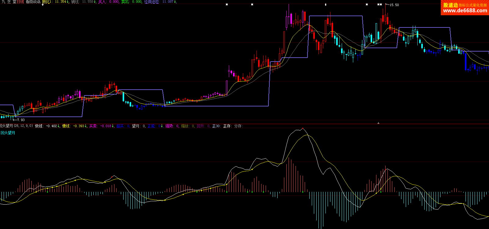 大智慧指标回头望月副图公式 快线慢线超买超卖 附图指标源码