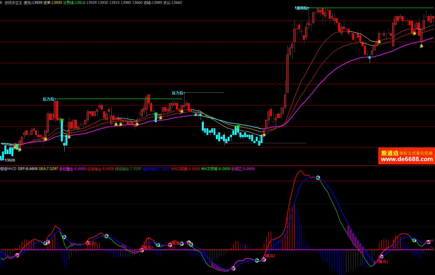 那牛博易大师信管家波段多空王主图指标 增强MACD副图公式 趋势建仓主附图源码