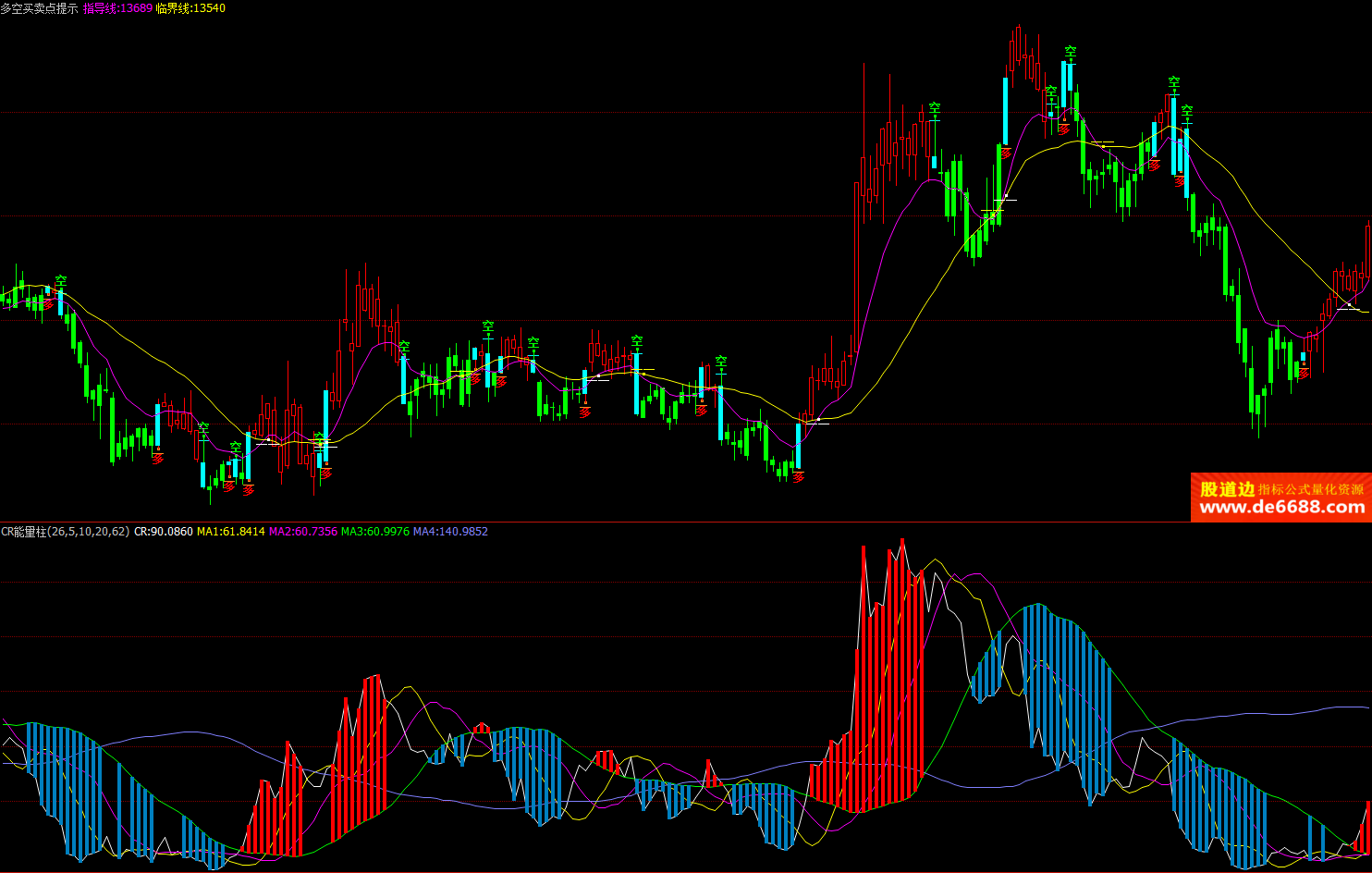 那牛博易大师信管家多空买卖点提示主图指标 CR能量柱副图公式 主附图源码
